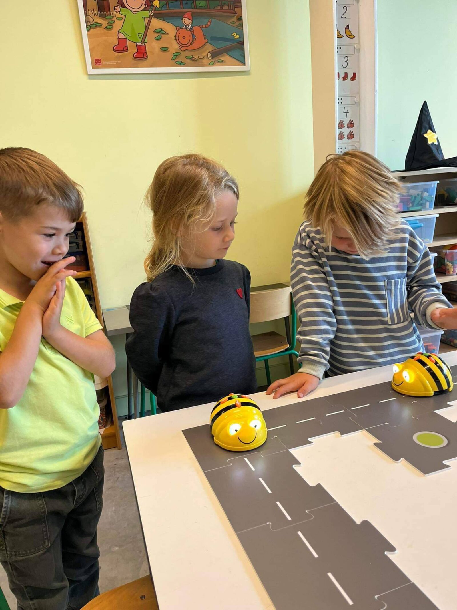 - Beebots programmeren om de straten en de verkeersborden te verkennen.